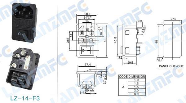 品字帶單保險帶開關-C14